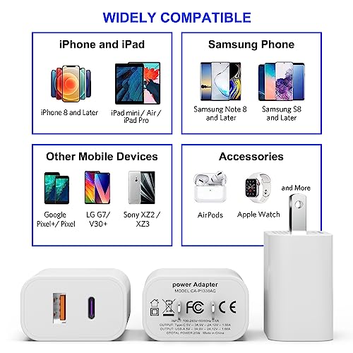 - ♦Universal Compatibility: 3 Pack type C charger block matches all USB A and USB C cable cords. Like iPhone 14/14 Plus/14 Pro/14 Pro Max, iPhone 13/13 Mini/13 Pro/13 Pro Max/SE, iPhone 12/12 Pro/XS Max/XR/X/8/7/6/6s, Samsung Galaxy, Android, LG, Nexus, HTC and more devices.