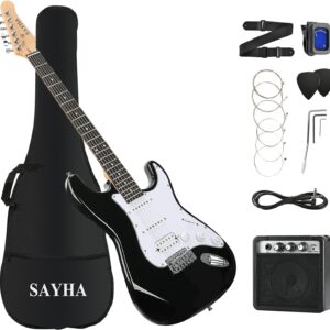 SAYHA Electric Guitar, 39 Inch Solid Full-size Electric Guitar HSS Pickups Starter Kit Includes Amplifier, Bag, Digital Tuner, Strap, String, Cable, Picks(Black)